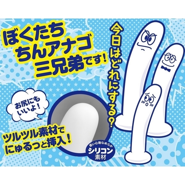 にゅるっと入れやすくて気持ちいい!シリコン素材のディルド三兄弟「ちんアナゴ」シリーズの長男バージョン。●本体全長18cm・太さ3.5cm●シリーズ中一番太い長男●肌触りの良いシリコン素材●つるんと滑らかなフォルム●強力吸盤でピッタリ固定。凹凸のないシンプルフォルムでアソコやアナルに無理なく挿入♪巨大フォルムでガンガン攻める「ちんアナゴ」三兄弟の長男ディルド。強力吸盤付きなので激しいアクションにも対応できます。