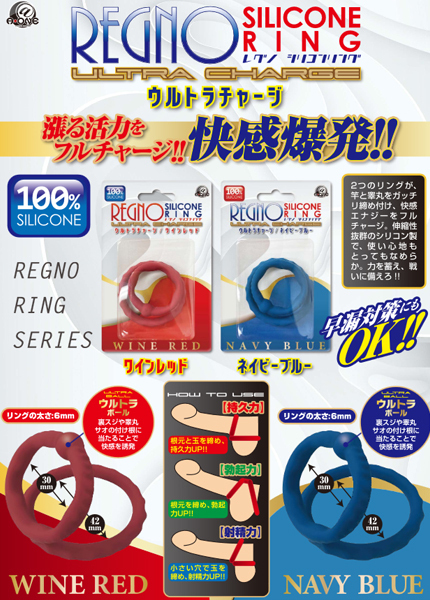 着け方次第で射精力・勃起力・持久力が高まる!2つの輪でガッチリ締め付けサポートする柔らかく伸縮性抜群のシリコン100%使用したペニスリング(青)。締め付け感を味わいながらウルトラボールで快感を呼び起こす!