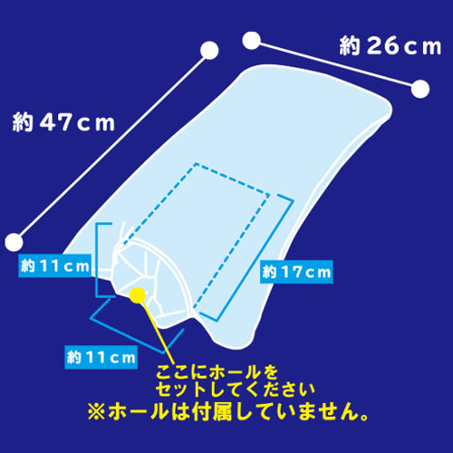 パッケージ:26.0×19.5×2.0 本体:47.0×26.0cm・ポケットサイズ17.0×11.0cm セット内容:ビニールピロー、布カバー