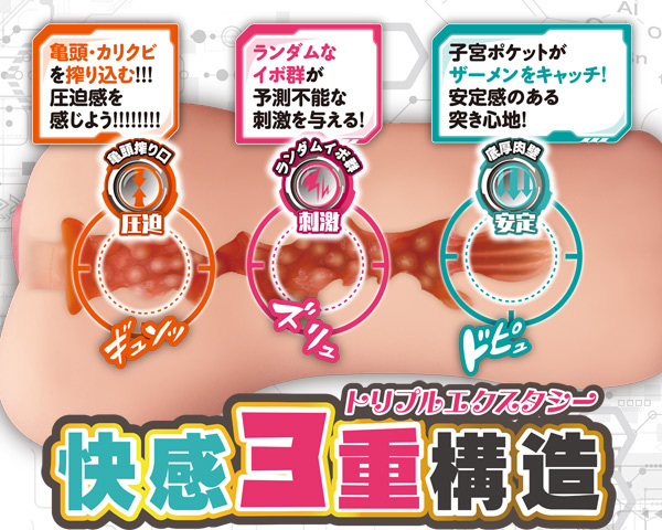 入り口から搾るようにぎゅんっと圧迫!中腹ではランダムイボが不規則な刺激を与え、最奥の子宮ポケットで精子をたっぷり飲み込む快感三重構造♪重量315g、底圧仕様で安定感のある突き心地を体感!女性のアソコを研究して作り上げたリアル造形の非貫通オナホ。ローション付属