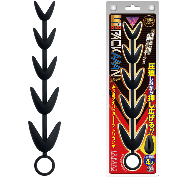 5連続の開口玉が内部でパッカーンする「5連アナパッカーン」。アナラー上級者はもとより普通のアナパッカーンとは違う刺激を求める方にも!シリコン製のビーズタイプだから入り口から挿れやすく、挿入するときはビースが1個1個閉じながら押し込んでいき、奥までくまなく簡単に圧迫♪括約筋に力を入れたり緩めたりすることで肉厚なビースの口がパクパクと動き、括約筋の内側で引っ掛かるのでクセになる快感が味わえます!挿入部は全長26.5cm、幅は1.9cm〜最大3.2cmまで対応!引き抜き時には内部に入れたビーズが連続して開口し、腸まで響きそうな5連の開口玉の刺激が他にはない圧迫感を与えてくれます♪「5連アナパッカーン」は通常のボールタイプよりも抜けにくく、普段のアナルビーズを使い慣れた方でもこの刺激は病みつきになること間違いなし!