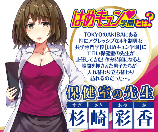 はめキュン学園に巨乳でえっちな保健室の先生アヤカが赴任!M字開脚になって生徒たちを誘惑する♪全長は140cmの等身大サイズ、ポケットは直径12cm、奥行き18cmに設計。別売り「レイカ(e26130)」「ヒマリ(e26128)」を用意してハーレムプレイをしたり、着せ替え衣装やタマトイズの匂いスプレーなどをプラスして楽しんでも♪オナホ&ローション付属