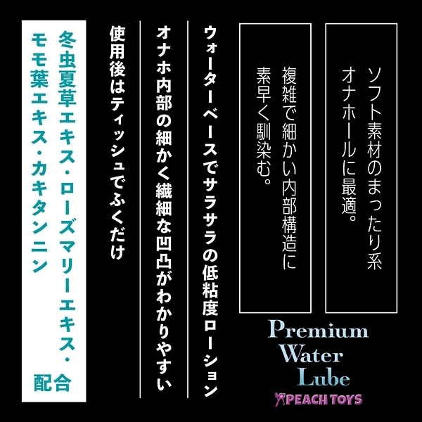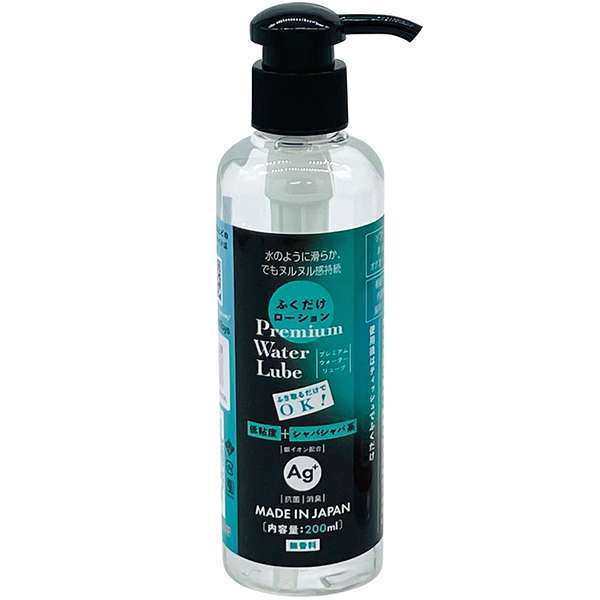 『水のように滑らか、でもヌルヌル感持続!ふき取るだけでOK!』「ふくだけローションPremium Water Lube (180ml)」が、ラベルデザインと容量・成分をリニューアルして再登場です!黒いポンプの「ふくだけPWL」は、【低粘度+シャバシャバ系】ソフト素材のまったり系オナホールに最適。複雑で細かい内部構造に素早く馴染む。冬虫夏草エキス・ローズマリーエキス・モモ葉エキス・カキタンニン配合●ウォーターベースでサラサラの超低粘度ローション●オナホ内部の細かく繊細な凹凸がわかりやすい●使用後はティッシュでふくだけ簡単●無香料●安心の日本製●200ml スタンダード <成分>水、プロパンジオール、ヒドロキシエチルセルロース、乳酸、キサンタンガム、ローヤルゼリーエキス、アルギニン、マカエキス、水溶性コラーゲン、グリチルリチン酸2K、ローズマリーエキス、モモ葉エキス、カキタンニン、銀、フユムシナツクサタケエキス、クエン酸、クエン酸Na、BG、エタノール、セルロースガム、炭酸水素Na、フェノキシエタノール、EDTA-2Na、ブチルカルバミン酸ヨウ化プロピニル