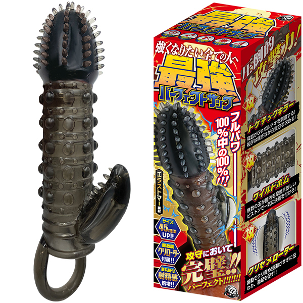 オトコの理想、全部のせ!!誰もが夢みた全ての力が手に入る完璧なサック。圧倒的な攻撃力と鉄壁の防御力を兼ね備え、攻守において隙のないサックです。強くなりたい全ての人へ…フルパワー100%中の100%を食らわせよう!!<商品特徴>トゲチックキラー…突起がGやポルチオを刺激する!相手は喘ぎながら貴方を求める!ワイルドボム…無数の玉が膣内を摩擦!!激しいピストンで一気に決着を付けろ!クリゼメローター…振動でクリ責め!振動がサオに伝わり、勃起も促す!!ストロングヘッド…あんこ入りで45mmUP。内部に穴があり、射精感を損わない。ストライプチューブ…内部の凹凸が竿にフィット。ズレ防止にも役立つ!!コーガンリング…睾丸を締め付け、快感エナジーをチャージ。一気に放て!!エラストマー素材…伸縮性抜群でどんなサイズでもぴったりFIT。