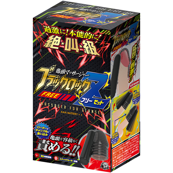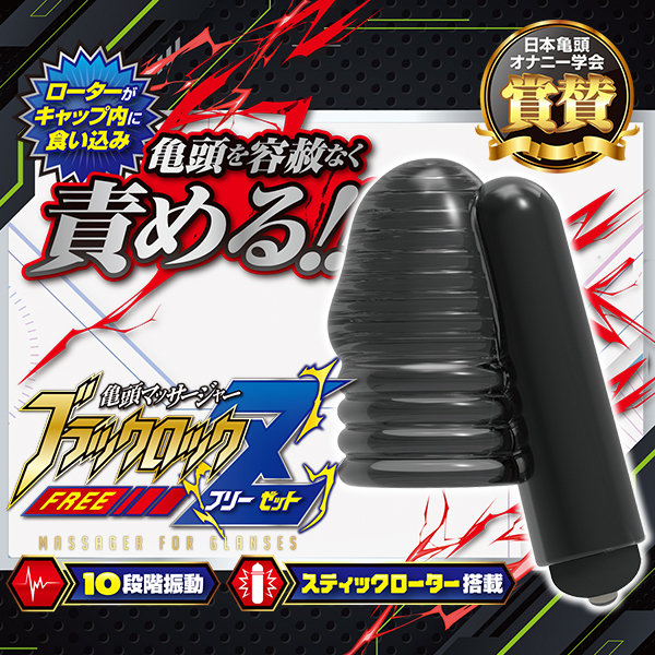 過激に!本能的に!絶★叫★級!スティックローターを搭載した『ブラックロックフリー』シリーズ最新作!!スティックローター搭載で、より自由に遊ぶことが可能になったブラックロックフリー。『Z』は、ローターがキャップ内に食い込むように配置されているので、激しい刺激を愉しめます。ローターをさらに食い込むようにグイッと動かせば、驚くような快感を得られます。過激な刺激で、絶叫射精を全身で感じよう!!<キャップ特徴>キャップ内部に食い込むように配置されたスティックローターが、竿・亀頭・カリクビに悶絶する程の圧迫刺激を与え、深く感じた事のないような射精へと導く!!竿を擦らず刺激に耐え、男潮をめざせ!!スティックローター特徴】ズッシリ重みのあるロングタイプのスティックローター。キャップから外せるので敏感部分に当てたり穴に挿れたりも出来ちゃう!!振動パターンは多彩な10段階。一極集中で強力振動が楽しめる。