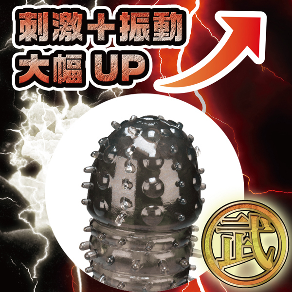 トガった鎧で攻撃力を高め持続力もUP!根元に激震走るマイクロローター搭載のペニスサック。フィット感抜群の伸縮性素材仕様!振動で刺激を大幅に上げて気持ちよさ倍増♪