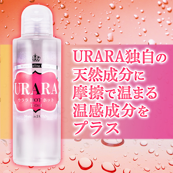人肌恋しい季節に温もりを与える温感仕様の潤滑ローション「ウララホット」150ml。独自の天然成分に擦れるとジンワリと温まる温感成分をプラス!冬や野外での使用にぴったりのローションです。