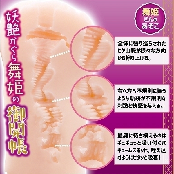 人気を博した御開帳miniシリーズにBIG版が登場!舞姫さんのあそこはヒダが絡まるウネウネタイプ。小さかったあの子達が大きくなって帰ってきた!あの御開帳miniシリーズが約4倍のサイズにボリュームアップしました。舞姫さんのあそこは奥まで続くウネウネ穴に細かいヒダが敷き詰められたワインディング構造。上下左右からランダムに当たってくる肉壁と擦れるヒダの組み合わせは、最短距離で絶頂へ誘います。非貫通タイプなので奥突き感も存分に楽しめます。