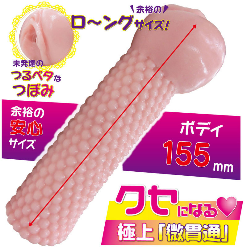 キュキュッと締まった極上名器!ぷにぷに感触がクセになる微貫通型オナホール。ストロークをサポートするイボイボボディには、しっかりとした高弾力のベビータッチ素材を使用。内部はイボとうねりヒダが吸いつく極上快感!最奥の貫通穴を小さくした微貫通タイプなので、指で穴を押さえれば非貫通型に近いバキューム刺激も味わえます。
