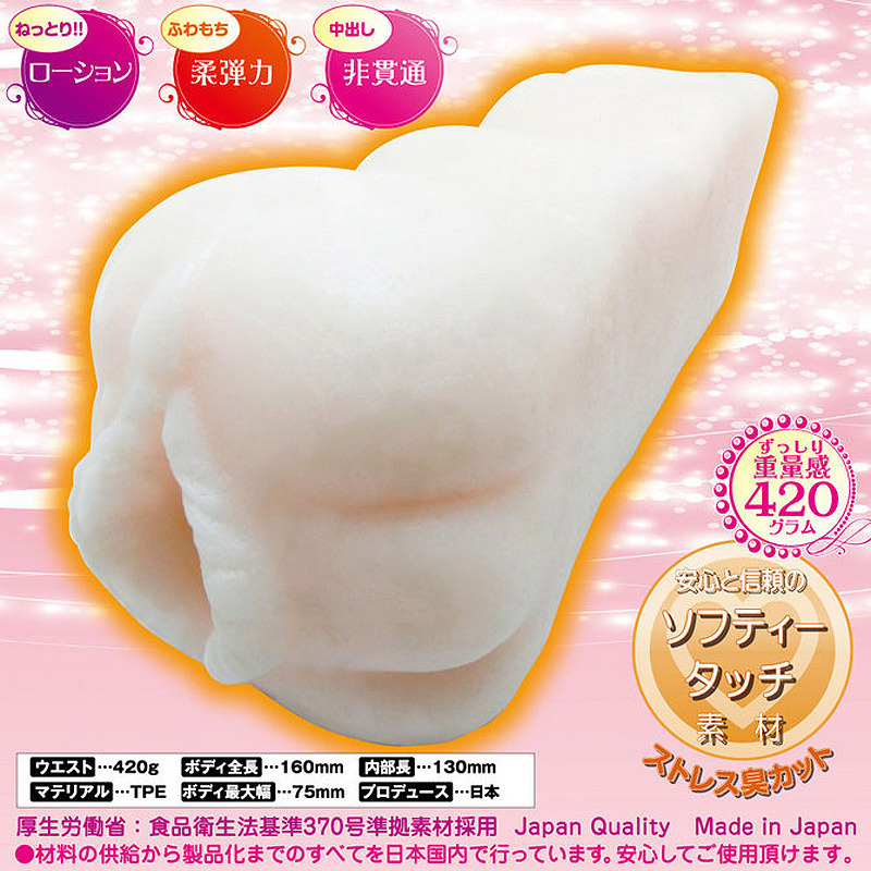 マッタリ長〜く楽しみたい!そんなユル系ユーザーの為に作られた極上ふわとろオナホール。●新開発のソフティータッチ素材を採用●究極のふわとろ素材が生み出す驚異の肉厚感●カリをしっかり受け止めてくれるくぱぁ仕様●うねる極細膣道の幅はたった1ミリ●無数のイボが吸い付き絡みつく膣道テクスチャー●ストレス臭もカットされた安心の日本製。握ると指の隙間からむにゅ〜っと溢れ出るほどの柔らかさ!長めのストロークでディープなまったりオナニーを楽しめるオナホールです。