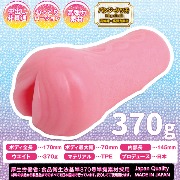 縦横無尽に駆け巡る迷宮で挟まれ包まれ擦られる非貫通オナホ。370gの肉厚ヒダのビラビラを心行くまで体感!高伸縮&高弾力バンジータッチ素材を使用した新感覚のオナホ。ローション付属