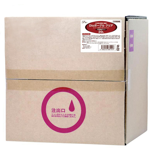 いつでも手軽に口内を清潔に♪口臭対策で大人気の「Dioガーグル」に、無色透明のクリアタイプが新登場!メントール&ユーカリ油を配合しているので、水で薄めてお口をゆすいだ後はとってもスッキリ♪寝起きや人と会う前、食後など、手軽に口内殺菌!25倍希釈タイプでたっぷり使えるお得なマウスウォッシュです。業務用として使える大容量20Lサイズ。詰め替え用にも◎※大型商品の為、送料が別途必要になります※当店で購入したアルコール消毒製品を転売すると処罰対象となる可能性があります、ご注意ください。