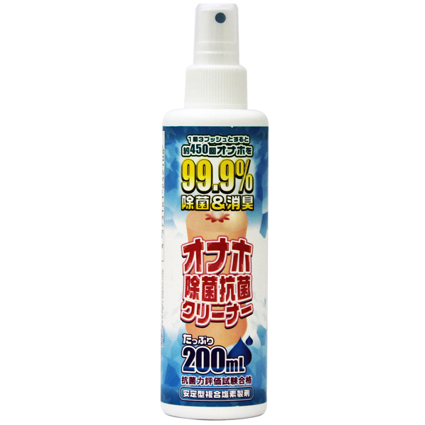 衛生面を気にする貴男に!オナホ専用の除菌消臭スプレー200ml。お手入れ後に、日々のメンテナンスに、湿気の多い時期のウイルス対策としても!プシュッと吹きかけるだけでオナホを99.9%除菌&消臭できちゃう♪公的機関の「抗菌力評価試験」に合格した実力派なオナホ専用クリーナー、お家にお1ついかがですか?1回3プッシュ計算で約450回ほど使用していただけます。