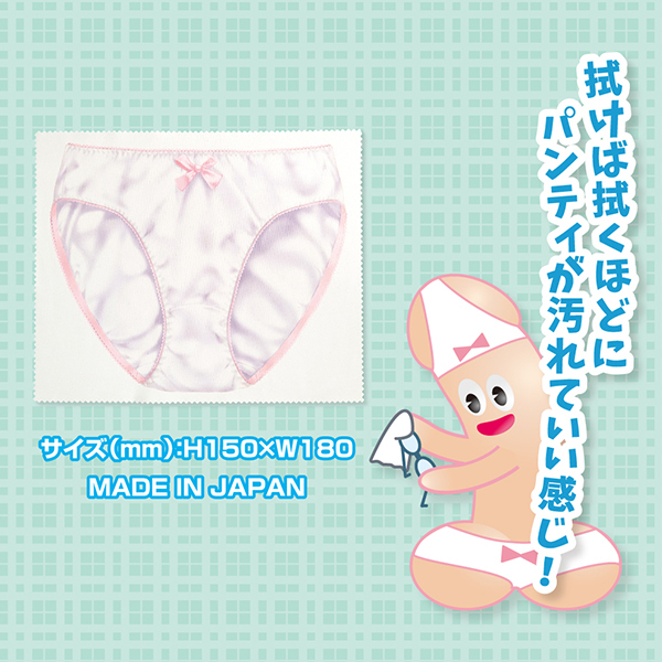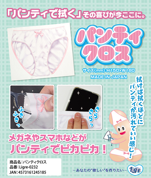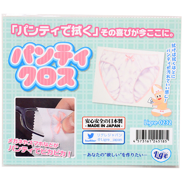 これを使って拭き拭きしよう♪あれ?よく見るとパンティじゃん♪というジョーク系グッズのパンティクロス!丁度良いサイズで眼鏡でもスマホでも何でも簡単に拭き拭き出来ます♪使い込んでいくことで汚れたりシミが出来たりと味わい深いオリジナルなパンティクロスになっていきます。