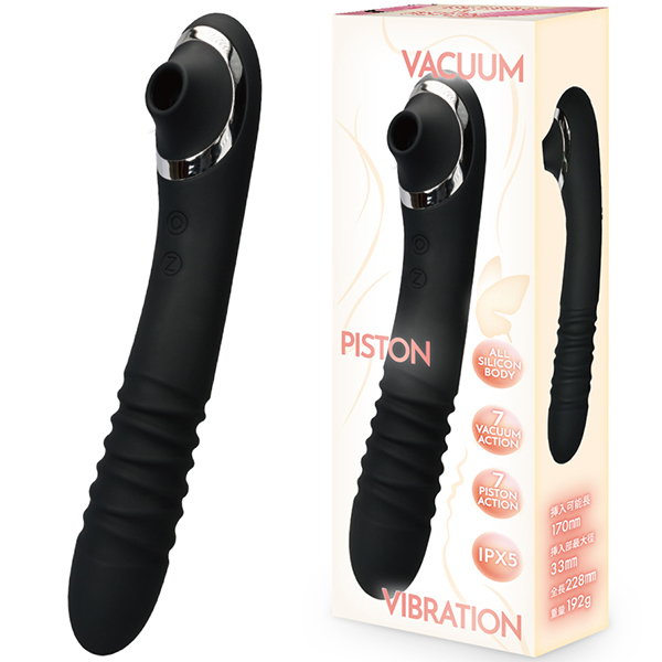 ロング挿入が可能なストレートタイプのピストンバイブの反対側に吸引ローターが搭載された二役アイテム登場です。肌触り滑らかな高品質のオールシリコンボディの挿入可能長は圧倒の170mm越え。さらに16mmのピストン機能と振動で奥までしっかり刺激を楽しめます。反対側に付いた吸引ローターも絶妙な吸引快感を楽しめる7つのパターン搭載。IPX5の防水等級だからしっかり洗えるので衛生的です。またパーツの密度を高めてプレイの邪魔になるアクションノイズを軽減しております。90分の充電で最大45分使用可能な強力なリチウムイオンバッテリー搭載です(使用環境により大幅に増減します)。●カラー:ブラック