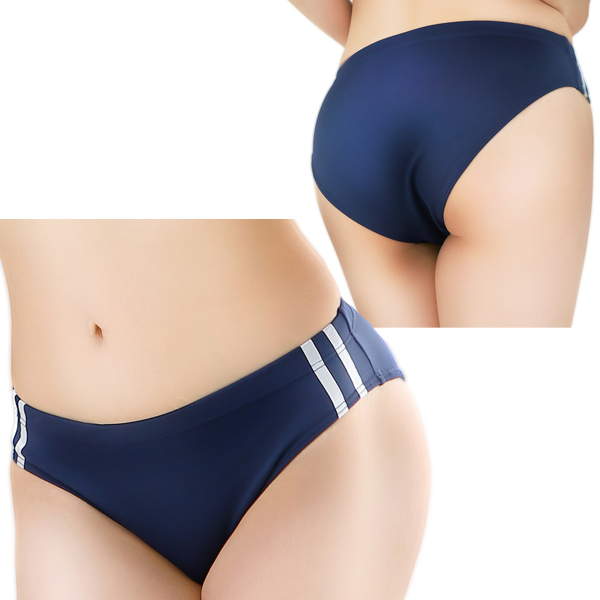 日本国内の工場で縫製され、国産のマイクロファイバー生地を使用した定番のブルマ。両サイドにダブルラインの入ったデザインで本格的なコスチュームプレイを楽しめます。