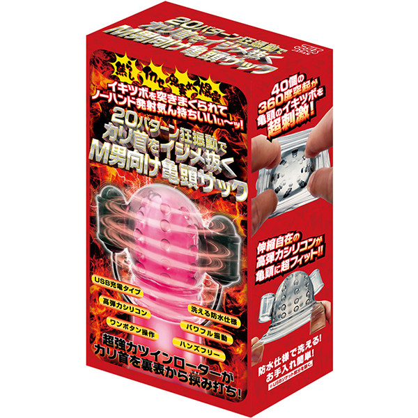 M男の欲望を満たすために設計された究極のアイテムです。20種類の振動パターンがカリ首を的確に刺激し、ハンズフリーで楽しめる仕様!高弾力シリコンで亀頭をしっかりホールドし、内蔵された40個の突起が絶妙なイキツボを刺激します♪パワフルなツインローターで裏表からカリ首を責め立て、絶頂へと導きます!USB充電式で、ワンボタン操作が簡単便利。防水仕様だからお手入れも簡単で、いつでも清潔に保てます♪手になじむリモコン形状で、あなたのオナ活をより一層楽しませてくれること間違いなし!
