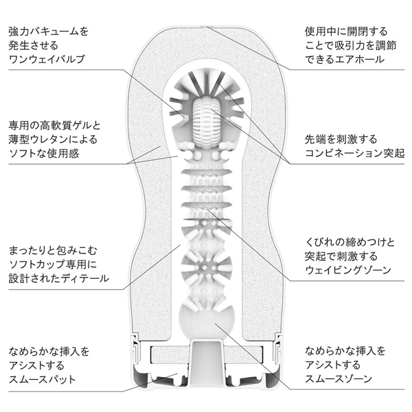 15年もの間、多くのユーザーに愛されてきたテンガに新技術を注ぎこみ、よりテンガらしくなってリニューアル♪その名も「オリジナルバキュームカップ」。白テンガは柔らかな弾力で包み込む優しい刺激が特徴のソフトタイプ!程よい締め付けとまったりと絡みつく刺激をお楽しみください。