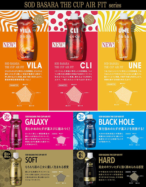 無段階で空気調整ができる画期的なソフト・オン・デマンド新ブランド「SOD BASARA」シリーズ新作!幾重にも連なるビラビラによる刺激が、先端から根元にかけて波のように押し寄せるヒダ特化型構造。バキューム力を調整出来るキャップ式のエアアジャストバルブを自由に開閉することで、自分好みの締め付けや挿入感を楽しめます◎重量156g