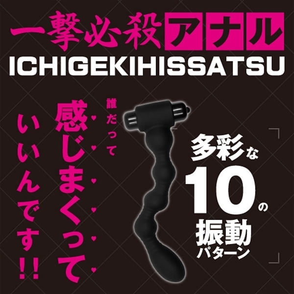 アナル開発初心者にもオススメ!一撃必殺アナル。多彩な10種の振動パターンで先端まで強振動。太すぎず、細すぎず、好みの角度に曲げて使えるのでしっかりフィット! ※振動部(ローター)の取り外しは出来ません、電池交換の際はキャップのみ取り外して交換してください、ローターと本体は固定されています。