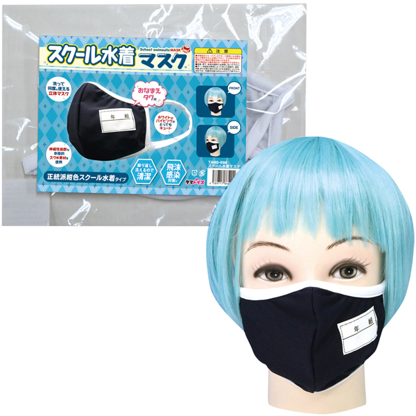 ゼッケン入りの本格派仕様!伸縮性に優れたネイビーのスク水素材に白パイピングを施した正統派スクール水着風のユニークな立体マスク。洗って繰り返し使えて高コスパ!飛沫感染対策やハロウィン仮装のコスプレ小物としてぜひどうぞ♪●メーカー型番:TAMS-694
