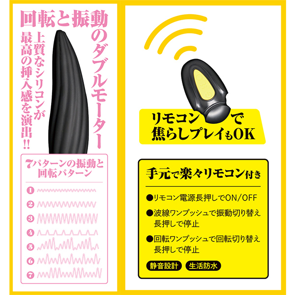 ハイパワーで悶絶必至な電動アナルプラグ「Anus Control」です。ぐりぐりと回転しながらの振動はこれまでにない快感!アナルプラグ系のフォルムですが、底部のストッパーがボール形状で挿入シャフトはツイスト加工済み♪ローションの滞留も期待できるナイスな設計となっております!7つの振動と回転が連動し、これらの動きを遠隔リモコンで操作できるので挿入しながらのパターン変化も楽しめます♪ボディはシリコン製で電源はUSB充電式!90分のフル充電で連続稼働45分!生活防水仕様でリモコンは電池式となっております。ユーティリティも良い設計で、アナルだけじゃなくアソコにも使えそうです♪●メーカー型番:TAMS-903