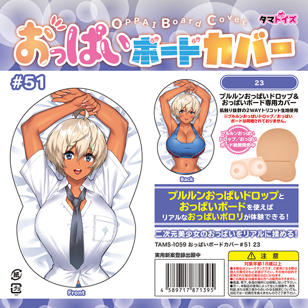 人気絵師「23」氏の描いたイラストが施された「おっぱいボードカバー 51」が新登場!プルルンおっぱいドロップとの組み合わせで、リアルなおっぱいポロリを体験できます♪さらさらとした手触りの2WAYトリコット素材を使用し、二次元美少女のおっぱいをリアルに揉むことができます!ただし、プルルンおっぱいドロップとおっぱいボードは別途ご用意ください。肌触り抜群の2WAYトリコット生地仕様で、実用新案登録出願中です。このおっぱいボードカバーで、よりリアルなおっぱい体験を楽しんでみてください!TAMS−1059