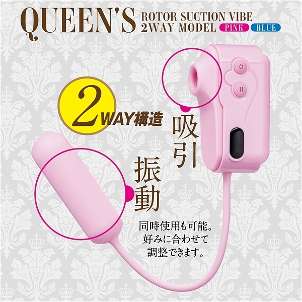 近年数多のアダルトグッズランキングにて上位入賞を果たしたQUEEN’Sシリーズより、新たなアイテムが登場。吸引&振動の2種機能を持ちながら「個別に楽しめない」商品も多い中、弊社独自の調査と改良を重ね「同時&個別に楽しめる」事を追求して開発しました。―QUEEN’Sローターサクションバイブ、2wayモデルはここに拘りました―◎QUEEN’S独自の吸引&振動2way構造を採用。使用するお客様の”気持ちイイ気分”に合わせて、別々に調整しながらご使用いただけます。◎「振動」の日も「吸引」の日も「両方」の日も。それぞれの”気持ちイイ”を体感頂けます。◎10種の振動、3種の吸引で本格的でパワフルな刺激を楽しめる。◎シリコン製で肌に優しい使い心地。◎カンタンな操作性(2ボタン)で初心者でも安心。◎約90分の充電で最大約60分の連続使用が可能。材質:ABS、シリコン