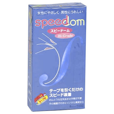 「スピードーム1000」は、テープを引くだけでスピード簡単装着が出来る優れものコンドーム。コンドームの装着時に裏表が分かりにくかったり、空気がうまく抜けなくて何度も装着しているうちに一個無駄にしてしまった、爪がうっかり当たって使用する前から破けてしまった、そんな経験はありませんか?「スピードーム1000」はそんな手間を取らせません!潤滑ゼリーがついて快感UP、粒状凸起付きが気持ちいいウェーブタイプのコンドームです。