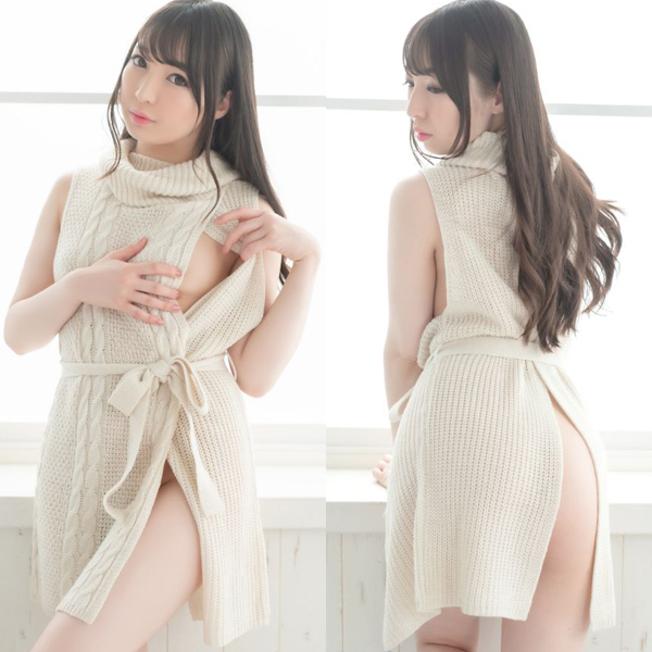 > 例のニット スキ見せワンピース (アイボリー)