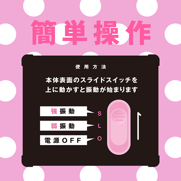 軽量でコンパクトで扱いやすい!まるでスティックローターのように使えるコンパクトな電マです。初心者の人に使って欲しいタイプでお求めやすい価格にこっそり遊べる静かな可動音♪電池を入れた状態でも90gの軽量設計ですので本当に使いやすいです。ヘッドの素材はプラ系でネックの動きは軽快!ワンボタンでオンオフと振動の強弱を簡単に操作でき、使いたい時にすぐ使えるよう、便利な電池交換式となっています♪電源は単4電池2本(付属)。こちらはピンクカラーです♪