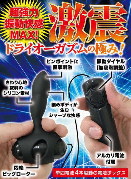 激震が走る快感!振動を極めた絶頂メンズローター!一般的なローターと異なる、電池四本駆動による6Vパワーの超強烈振動を実現させた「GEKISHIN 極」シリーズより、エネマボディを搭載したメンズローターが新登場!エネマボディは、さわり心地抜群のシリコン素材。ボディのラインは二箇所のくびれがアクセントを生みますカーブデザイン。超強烈振動がボディてっぺんまでビリビリ震える悶絶特殊構造です!「エネマスリム」はボディ直径10ミリ〜25ミリの細めなスリム仕様。この細さがアナタを虜にさせるはず!さらに、ハイパワーを加速させるアルカリ電池付き!パワーアップを極めた激震刺激を体感せよ!