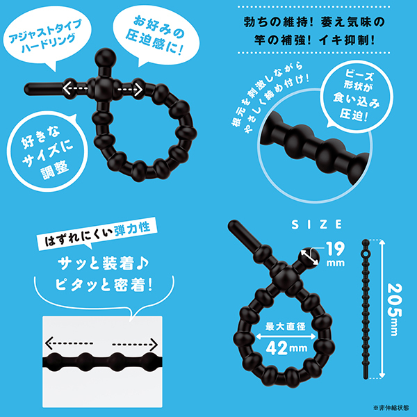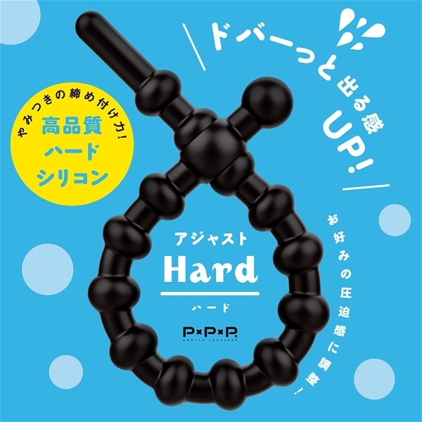 超!ぷにっとりんぐからサイズの調整が出来るアジャストタイプが登場。ストッパーの凹凸も心地よい刺激となって楽しめます!自分のサイズに合わせて、自分好みの締め付けで、サッと装着♪ピタッと密着!ハードverは臭いのない高品質ハードシリコンでやみつきの締め付け!勃ちの維持!萎え気味の竿の補強!イキ抑制!自分サイズに合わせられるので皮戻り防止にも便利です。ドバーっと出る感UPできゅーっと超極楽発射!
