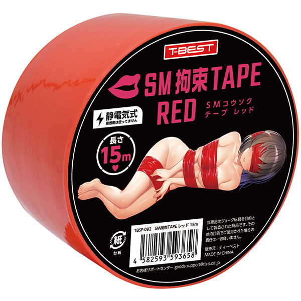 好きなあの子をいいなりに……。これひとつでSMプレイの拘束を簡単にする、ボンデージ用テープ「SM拘束TAPE」!SMプレイの核心となる「拘束」を、とってもお手軽にするSMアイテムです。静電気で吸着するタイプですので、ぐるぐる巻き付けるだけでしっかり拘束緊縛。接着剤を使ってないためベタつかずに跡も残りませんので、お肌や髪の毛などのデリケートな箇所にも使用可能です。さらに、家具に縛り付けたり、おもちゃを固定したりなどの使い方もOK!剥がしてもまたくっつくので、貼り直しや再使用も可能です。手枷足枷目隠しなど、ぐるぐる巻き付けるだけで簡単に拘束プレイを楽しめます!お手に取りやすい、お手軽な15mタイプです。カラー:レッド