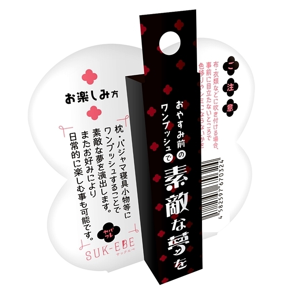 ほとばしる熱を楽しみたい方へ。おやすみ前の夢ケアにワンプッシュ。それがヤバフレ…アナタの夢を素敵に彩ってくれる「ヤバイフレグランス」です。鼻孔をくすぐる新感覚のニオイ系プロダクト。あの香りがいつでもどこでもお楽しみいただけます。嗅覚からはじまる艶やかで甘美な夢の世界をお楽しみください。【お楽しみ方】枕・パジャマ寝具小物等にワンプッシュすることで素敵な夢を演出します。お好みにより日常的にもお楽しみいただけます。※布・衣類などに吹き付ける場合、事前に目立たないところで色移りやシミにならないか確認してからご使用ください。