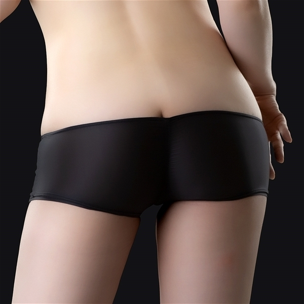 日本国内の工場で縫製され、肌触りが良く伸縮性と透明性の高い国産のストレッチ生地を使った超ローライズなボクサーショーツです♪フロントからバックにかけてセンターにゴムラインがあり、中央に食い込みゴムがあるという挑発的なデザインがポイントとなっています。クロッチ部分は縫い目のないハギ無しタイプとなっていて、生地感は肌触りが良く伸縮性と透け感のあるリッチな素材を使用しています♪透ける感じや挑発的なシルエットはマンネリ解消のアイテムとしても良さげでカラバリはブラックとホワイトの2色展開!こちらはブラックとなっています♪