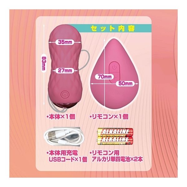 ただ震えるだけじゃない!特殊な機巧アクションが遠隔操作で楽しめる、新しいワイヤレスローター「リモコンギミック」!ブロッサムピンクカラーの「スイング」モデルは、首振りするスイングギミックを搭載!小さなボディながらも、まるで電動バイブのような、ヘッドがグイングインと首振りスイングします。電動バイブ特有のあのクネリ回転の気持ちよさ、モバイルで楽しめます!さらに、ギミック部分だけではなく、リモコン部分も最先端!遠隔操作の距離は15mまでOK。操作もシンプルな2ボタン式。動作ファンクションは10アクションパターン。本体部分には触り心地の良いシリコン素材。本体はUSB充電&リモコンは単四電池と、入手しやすさも抜群。さらには、本体だけでも動作できるスグレモノ!まさに新時代リモコンローターのフラグシップマシン!新感覚のリモコンプレイを堪能しましょう!