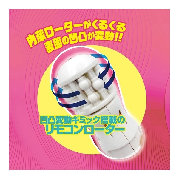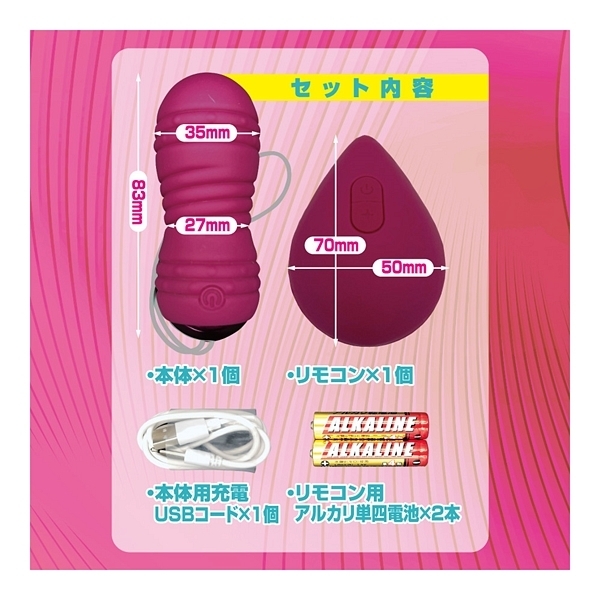 ただ震えるだけじゃない!特殊な機巧アクションが遠隔操作で楽しめる、新しいワイヤレスローター「リモコンギミック」!ワインレッドカラーの「ローラー」は、表面の凹凸が変動するローラーギミックを搭載!小さなボディながらも、内蔵ローラーが回転するアクションで、表面凹凸がポコポコと変動します。電動バイブのパール刺激がもつあの気持ちよさ、モバイルで楽しめます!さらに、ギミック部分だけではなく、リモコン部分も最先端!遠隔操作の距離は15mまでOK。操作もシンプルな2ボタン式。動作ファンクションは10アクションパターン。本体部分には触り心地の良いシリコン素材。本体はUSB充電&リモコンは単四電池と、入手しやすさも抜群。さらには、本体だけでも動作できるスグレモノ!まさに新時代リモコンローターのフラグシップマシン!新感覚のリモコンプレイを堪能しましょう!