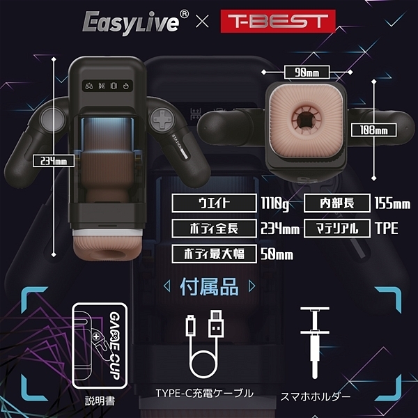 携帯ゲーム機型快感マシーンついに誕生!両手でコントローラーを持つデザインは、ただの遊び心だけでなく、使用時の安定性・操作の快適性を両立できるよう考え抜かれ開発されました。温熱機能を搭載し、ストロークパターン(8種)と振動パターン(10種)を自由に組み合わせることが可能!更には、本体上部にスマホを取り付けできるようスマホホルダーが付属されているため、いつでもどこでも携帯をカチッと取り付けて、お気に入りのムービーを見ながら昇天♪◎充電2時間で約120分使用可能。◎付属品:スマホホルダー・USB充電ケーブル