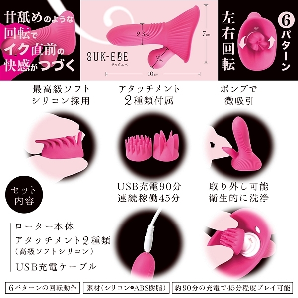 優しく舐めるから、イク直前の感覚がつづく。それが「ヤバ回転ローターNEBURINGUS−ネブリングス−」です。強い振動ばかりに慣れていると感度が鈍くなりませんか?今こそ優しくせつなく敏感な部分を「ねぶり」ましょう。敏感なアソコも胸もどちらもOK!!最初に使うときはお好みのアタッチメントを装着してからご使用ください。極限まで柔かくした高級シリコンブラシが優しく回転して刺激します。(薄めのローションをつけると滑りが良くなります)焦らされるような独特の感覚が、オーガズム直前のもどかしさを再現。左右回転6パターンで飽きさせません。優しさを演出するために敢えて「微」吸引ポンプも設置。ポンプのプッシュでもどかしい吸い付きが更なる焦らしを演出。しかも交換用アタッチメントつきで楽しさ2倍。【セット内容】ローター本体/アタッチメント(高級ソフトシリコン)/USB充電ケーブル。滑らかな感触をお求めの場合はローションをご利用ください。・6パターンの回転動作・約90分の充電で45分程度楽しめます●タイプP