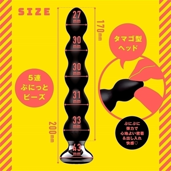 重い振動が5連のビーズにずっしり伝わる極イキバイブ!!PPPより男女兼用のバック用ビーズバイブが登場。超振動深感!!超奥イキっ!タマゴ型ヘッドはツルンっと簡単挿入フォルム!5連ぷにっとビーズでぷにぷに弾力と心地よい密着&出し入れ快感♪超強力重厚モーターで芯から震える重くて強烈な振動!高品質ソフトシリコンでカラダに負荷のかからない優しい仕様の滑らか&柔らかスティック●極イキ仕様の優秀バイブでもっと新しい快感を見つけてくださいね!本体は充電式なのでエコに使用可能。完全防水で浸水も気にならずお手入れ簡単!絶頂を手元でコントロールできるリモコン付き!本体:充電時間約90分(供給電力量によって変わります)。本体:最大連続稼働時間約50分(初期振動パターン未変更時)_完全防水のIPX7等級_10パターン振動_付属品:電池式リモコン_USBマグネット式充電ケーブル