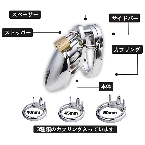 BDSMの代表的な道具で支配と服従の快楽を!シンプルなデザインのため簡単に装着できます。3つのサイズのリングがありますのでお好きなサイズで楽しめます。先端にスリットが入っているので普段通りに生活することが出来ます。合金製のため、お湯やアルコールで安全に洗い落とせます。●6000S