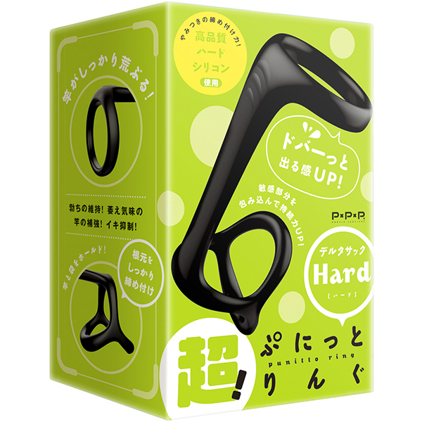 超!ぷにっとりんぐから、竿と根元をしっかりサポートするリングが登場。根元を3点で締め付けるデルタリング!竿をしっかり締め付けるリングでイキ抑制!サッと装着♪ピタッと密着!はずれにくい弾力性、臭いのない高品質シリコンでしっかり締め付け、着けてるストレスを軽減!すべすべ装着感で毛の巻き込みを緩和。 肉壁ゾリゾリサックでパートナーも快感UP!自分好みの締め付けで勃ちの維持!萎え気味の竿の補強!イキ抑制!ハードな締めつけでドバーっと出る感UP♪きゅーっと超極楽発射!