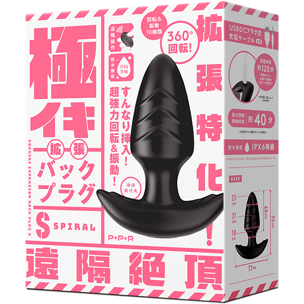 ゆっくり馴染んでしっかり拡張!!超強力な回転&振動の拡張特化で極イキ仕様!ツルンと簡単挿入フォルム のタマゴ形状プラグ!ナカをコネコネかき回される恍惚感!10パターンの拡張&絶頂刺激の360°回転&振動ギミック!強力重厚モーター内蔵で芯から震える重くて強い振動が楽しめます。ぷにっとしていて肌ざわりなめらかな高品質ソフトシリコン仕様です。本体は充電式なのでエコに使用可能。※本体:充電時間約120分※本体:最大連続稼働時間約40分(初期振動パターン未変更時)_IPX6等級_振動&ギミック10パターン可動_付属品:USBDCプラグ式充電ケーブル※IPX6:放水ノズルを使って噴流水を最低3分間あてる試験(浸水は不可となります)