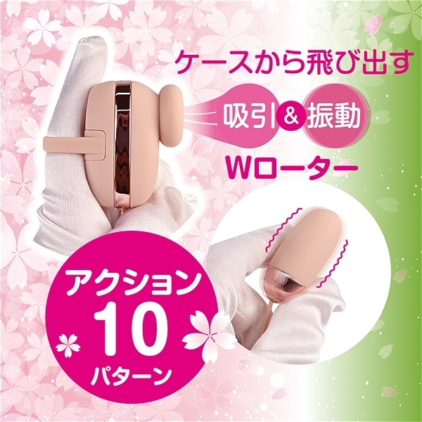 ケースがリモコンになった収納出来て持ち運べる吸引×ローターのWローター。見た目もシンプルなコンパクトケースだから置いていても違和感がありません。また吸引ローターは使いやすいフィンガーリング付き。フィンガーリングにもう一つのローターを固定すれば強力振動シゲキと真空吸引シゲキを同時に楽しめます。60分充電で最大90分使用可能(使用環境により大幅に増減します。)なリチウムイオンバッテリー搭載。実用性の高い10パターン振動。しっかり洗える安心のIPX5の防水性能と機能もバツグンです。