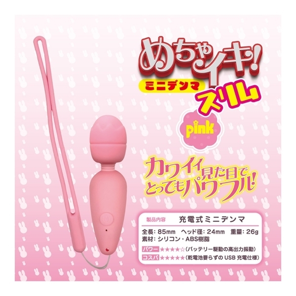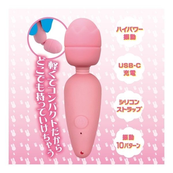 カワイイ見た目でとってもパワフル!USB-C対応の充電式ミニ電マが新登場!全長85ミリの小さくて可愛いミニサイズの電マです。小さなボディに、高出力の充電バッテリーとハイパワーな振動モーターを内蔵しました。アクションパターンは10種類もありますので、お好みの振動を見付けましょう!さらに、充電方法に最新となるUSB-C方式対応。お使いのスマホ充電環境で、そのままで充電できます。乾電池要らずなのでコスパも抜群。不意な落下を防ぐ、オシャレなシリコン製ストラップ付き。スベスベで肌ざわりの良い、ヘッド部シリコン素材。軽いからどこでも持っていける、重さ26グラム。自由に曲がる、フレキシブルネック。充電時間約90分で、連続稼働約60分。「スリム」は、スッキリとした細身が特徴的なスマートデザイン。ヘッド直径26ミリ!初めての方でも大満足の、チャーミングでラブリーなミニ電マ!●ピンク