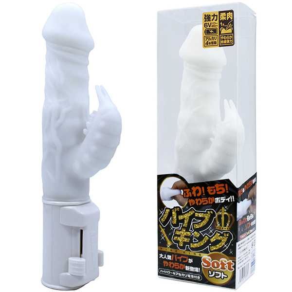 あの大定番バイブレーターが柔らか素材になって新登場!ぷにぷにとした柔らさがクセになる、ソフトボディのバイブレーターです。もちもち柔肌のふんわり柔らかさで、優しく丁寧な気持ちよさを楽しみましょう。ぐるぐるとかき乱す快感の強力スイングに、敏感部分を刺激する子機振動。アルカリ単四電池4本駆動による強烈ハイパワー。人気の秘訣、雄々しい血管ディティール&子機の2本触手デザイン。バイブビギナーの方にオススメできるのはもちろん、マニアの方や従来ファンも満足できる、夢心地な快感バイブレーターです。●カラー:ホワイト