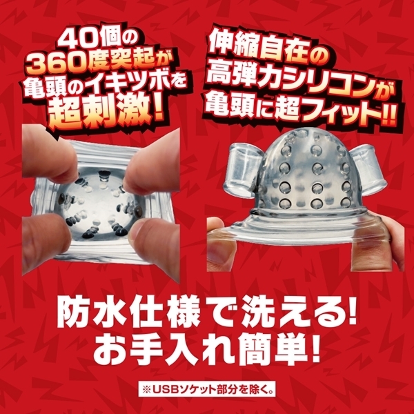 M男の欲望を満たすために設計された究極のアイテムです。20種類の振動パターンがカリ首を的確に刺激し、ハンズフリーで楽しめる仕様!高弾力シリコンで亀頭をしっかりホールドし、内蔵された40個の突起が絶妙なイキツボを刺激します♪パワフルなツインローターで裏表からカリ首を責め立て、絶頂へと導きます!USB充電式で、ワンボタン操作が簡単便利。防水仕様だからお手入れも簡単で、いつでも清潔に保てます♪手になじむリモコン形状で、あなたのオナ活をより一層楽しませてくれること間違いなし!